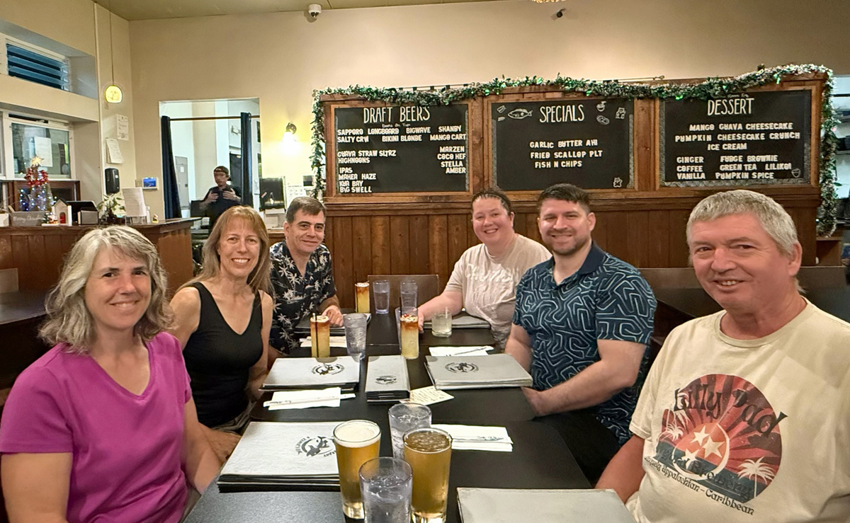 Tom's cousin Kelly – astronomer and Acting Planetary Defense Manager for NASA – happened to be in Hawaii for a few days for meetings and observatory site visits. We met Kelly and three of her colleagues for dinner at Miyo's Restaurant in Hilo for some Japanese food. It was super fun visiting with everyone!