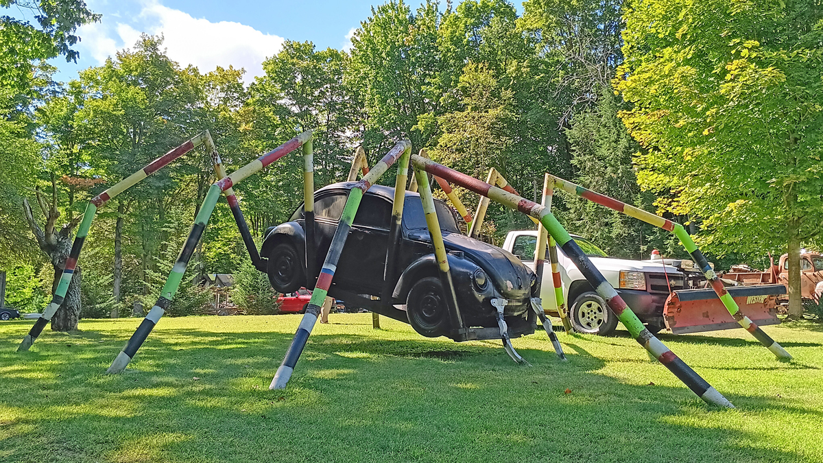 Next worthy stop, Schaefer's Auto Art in Erie, PA. These interesting creations are just in some guy's front yard, but the public is encouraged to visit. There's even a guest register. Fun sculptures – just our cup of tea.