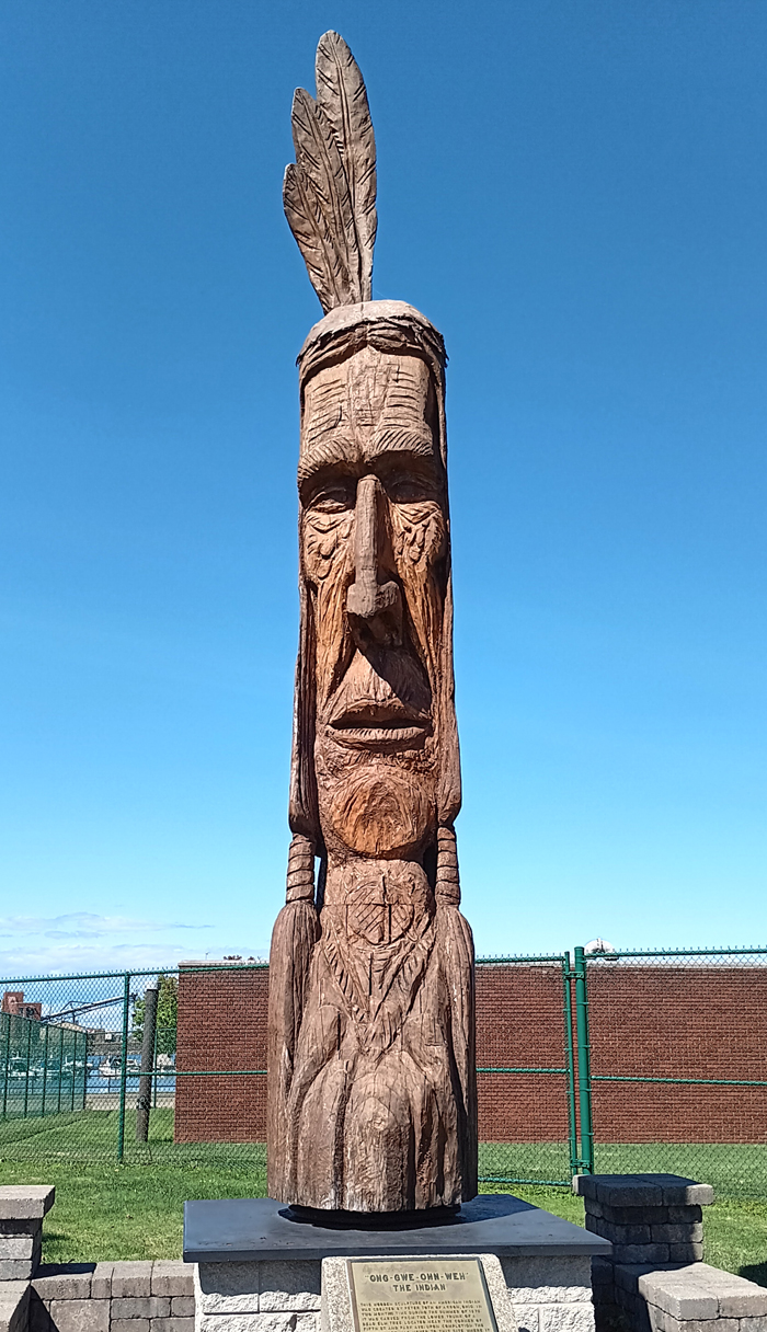 Now in New York, we stopped in Dunkirk to see “Whispering Giant 7.” This is part of artist Peter Toth's “Trail of the Whispering Giants,” with sculptures on display all across the United States honoring Native Americans. Tom and I love these things.