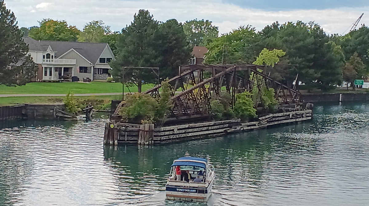 Our first canal sight was an old train swing bridge in Tonawanda, NY, just outside of Buffalo. Technically, this seems to be about 1,000 feet from the Erie Canal, but we looked at it anyway. The trees growing from the bridge are a subtle sign that it is long abandoned. It seems funny that they just left it there in the middle of the waterway.