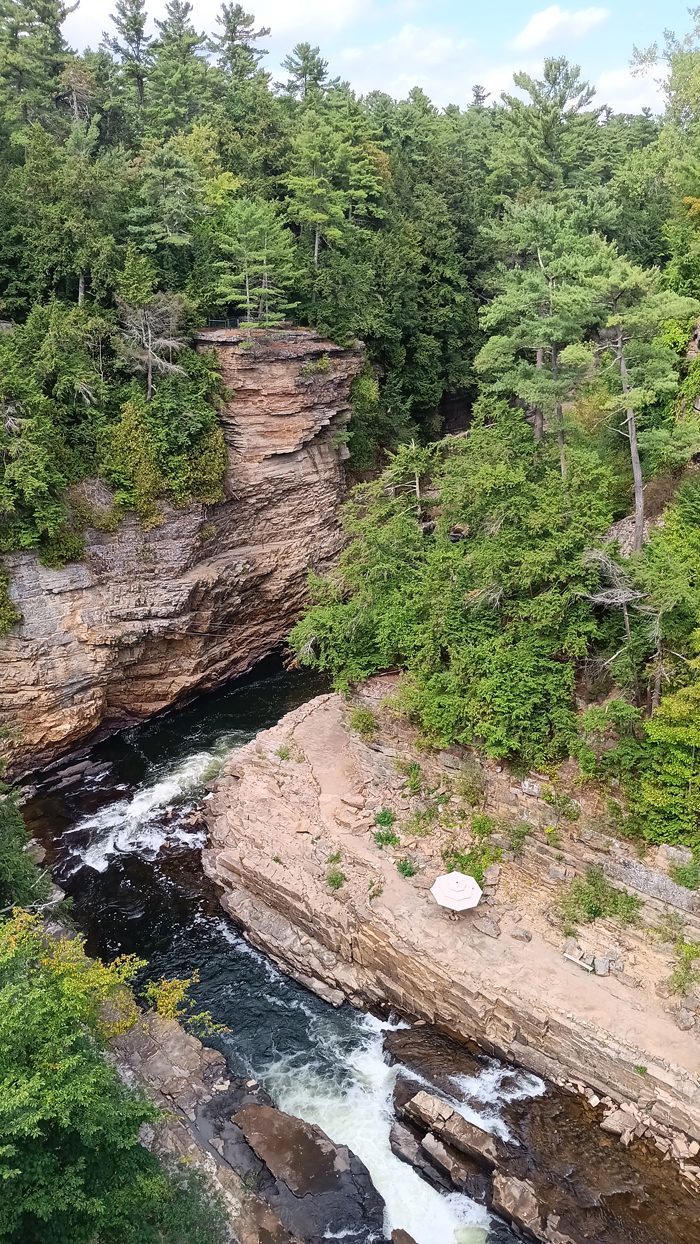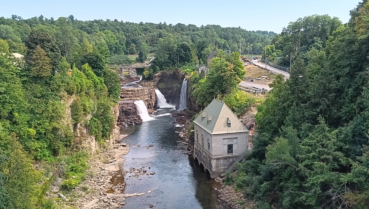 It was a pretty drive through eastern Upstate New York toward tonight's hotel in Plattsburgh. Just past Keeseville, we caught a glimpse of some amazing waterfalls while crossing a bridge and pulled over for a closer look. These were the Rainbow Falls at Ausable Chasm. Very nice!