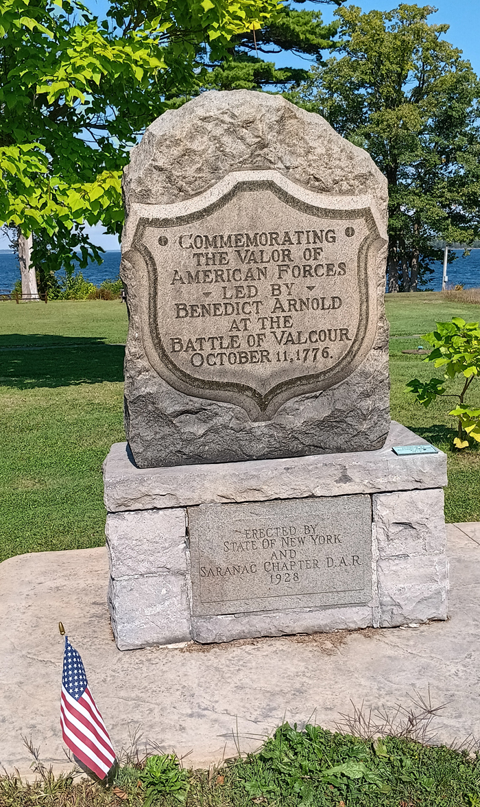 Arriving in Plattsburgh, we stopped on the shore of Lake Champlain across a narrow strait from Valcour Island. One of the first naval battles of the Revolutionary War was fought here in October 1776, with the American fleet under the command of Benedict Arnold.