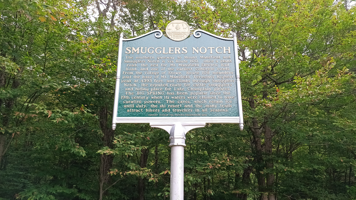 Smugglers' Notch is a narrow pass through Vermont's Green Mountains lined with 1,000-foot cliffs and dotted with numerous natural alcoves perfect for hiding illicit goods. The area is named for the smuggling that occurred in the lead-up to the War of 1812, when the US prohibited American trade with Canada. Many locals, long dependent on this trade for their livelihood, bypassed the embargo by carrying goods through the notch.