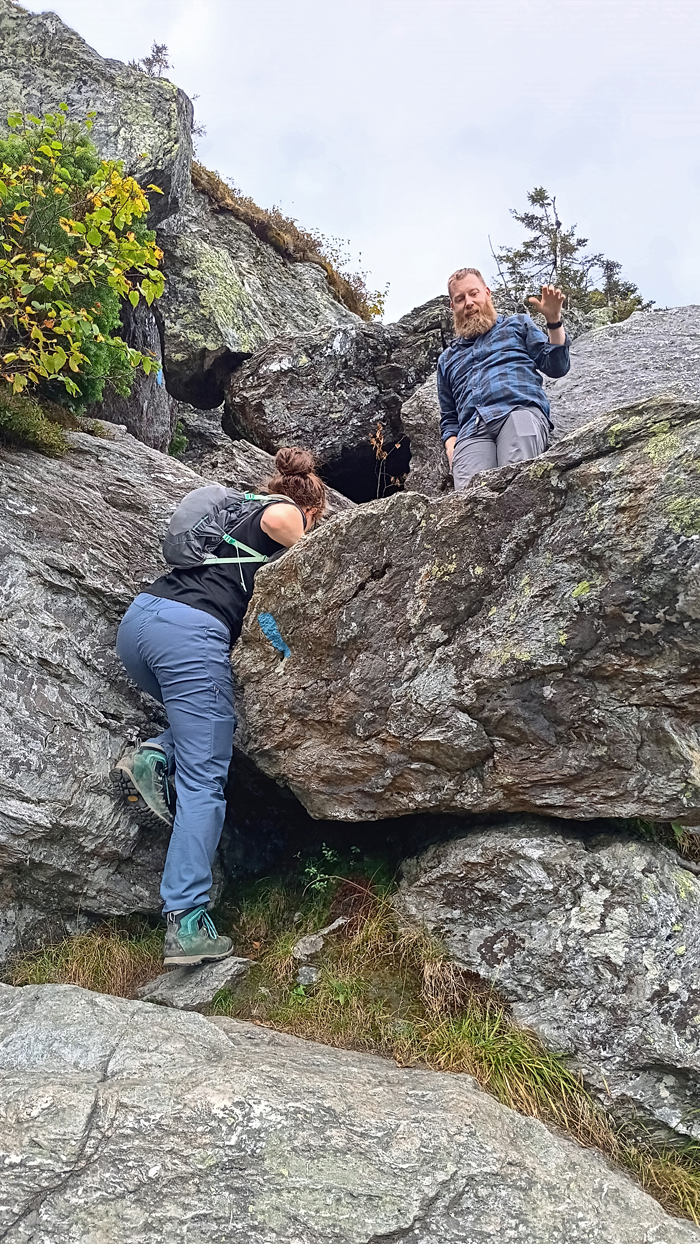 The Cliff Trail was tough but fun. We had to crawl through some narrow areas and climb up and over huge boulders, but metal hand-holds have been installed in the trickiest sections, and it never felt too dangerous. Descending, however, was going to be a bit more treacherous.