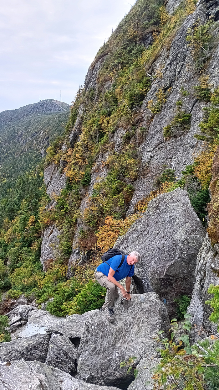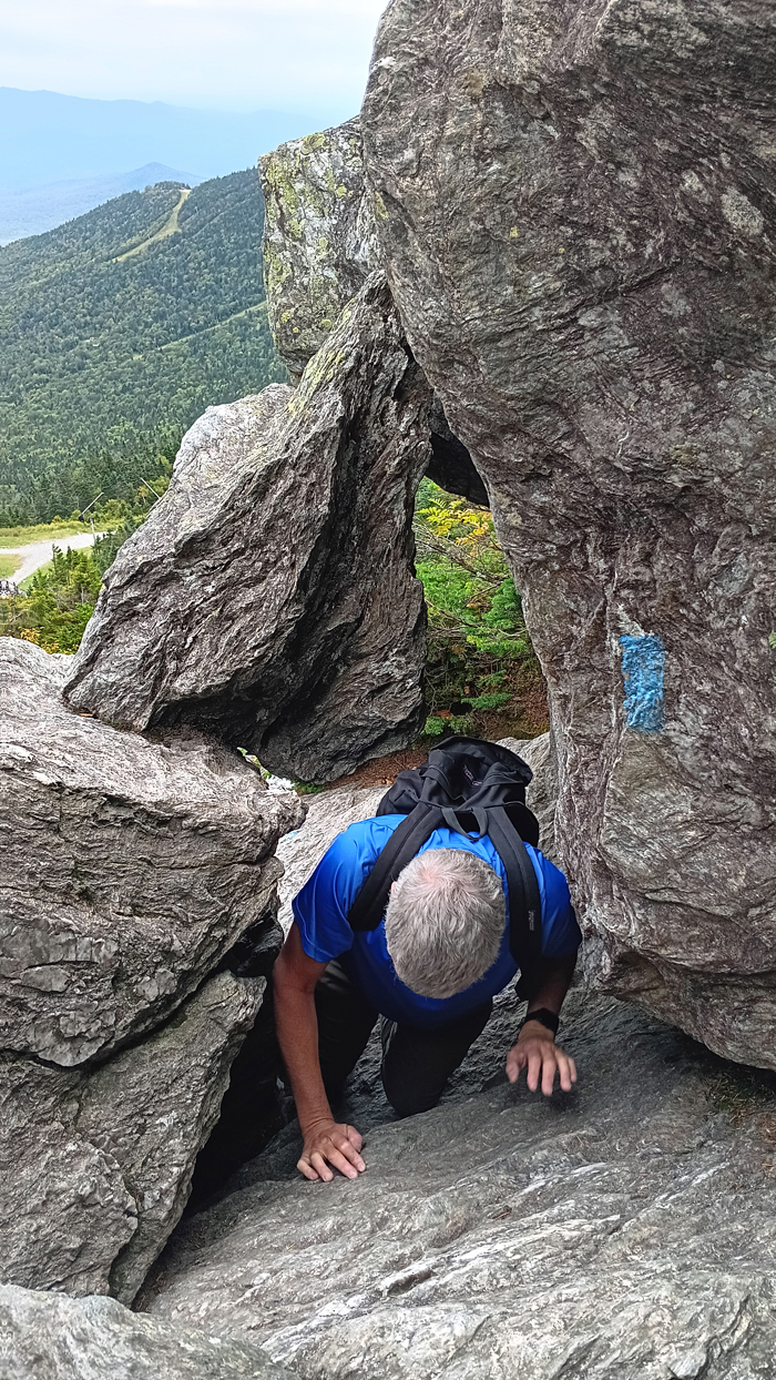 Emerging from the Cliff Trail at its intersection with the Long Trail, we were now high on the Mount Mansfield's ridge and the views were amazing. A year ago, we could hardly see our hands in front of our faces!