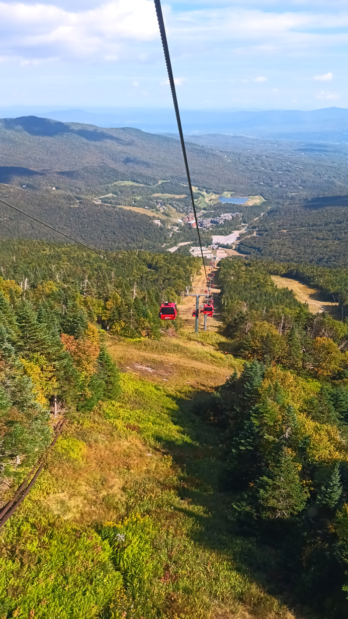 Early in the afternoon, we met Alex and Sarah at the base of the Gondola Skyride, part of the Stowe Mountain Ski Resort. Mount Mansfield, at 4,393 feet, is Vermont's highest peak. Tom and I visited the summit last spring via a different route, but it was raining and foggy that day, and we couldn't see a thing. Today, we'd ride the gondola partway up, then hike/climb the rest.